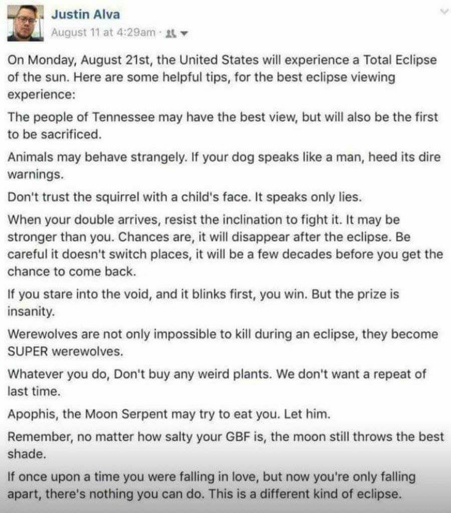 And read this hilarious meme that made me glad the eclipse only lasted for a few short hours.