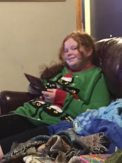 Anyway, Squish is home (can you see her super speshul sweater we got from Michael’s? The eye slight up!) The kids and I spent yesterday cleaning up the house while Mate and Big T went to help Mate’s mom move. And today was the soap making party (we made bath bombs! They’re so easy! And so cool! And I want to make more and more and more!) as well as a King’s Game. Squish and I made soap and Mate and ZoomBoy went to the game.