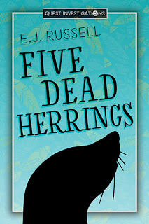 Five Dead Herrings is the first in the Quest Investigations M/M paranormal mystery series, a spinoff of E.J. Russell’s Mythmatched paranormal rom-com story world. It contains no on-page sex or violence, and although there is a romantic subplot, it is not a romance.