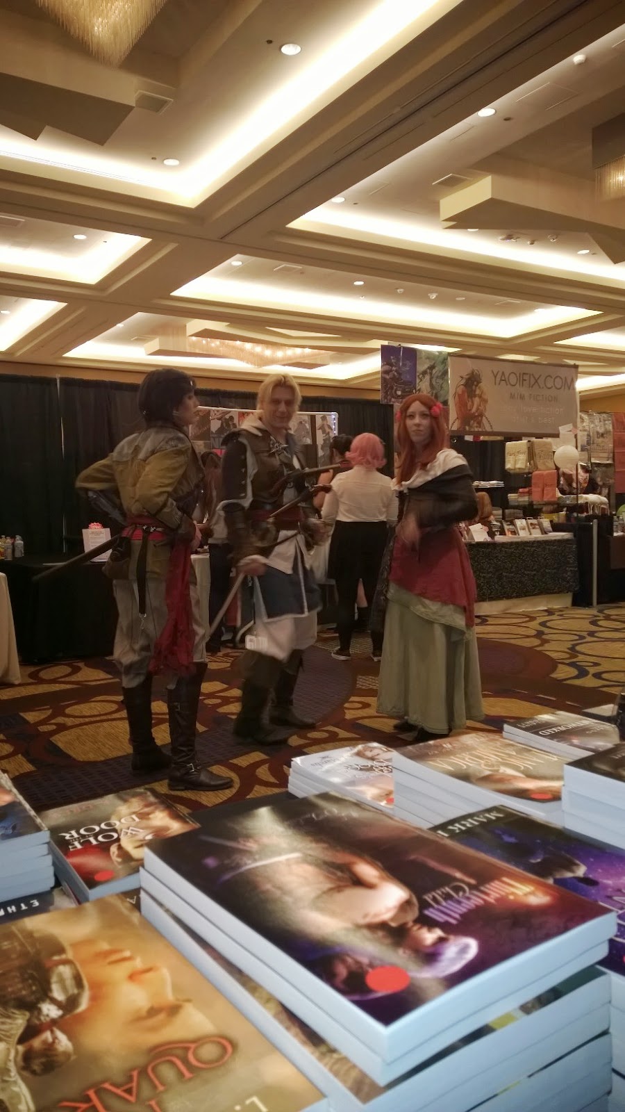 Also with the DSP booth were Anne Reagan, our beloved editor at Harmony Ink Books, Julianne Bentley (who enjoyed the corset booth very much!) from the admin department, and Beau Shemery and Augusta Li, two our our most celebrated fantasy authors, and author EM Lynley who was at my first Yaoi-Con and here as well!