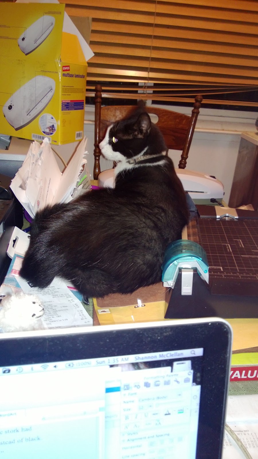 You may notice the trimmer, the laminator, Mate’s orderly little world whereby he converts our kitchen table to a registrar’s work station? He had to laminate 400 player cards this weekend, punch holes, trim, put them on rings, and alphabetize for the soccer club.