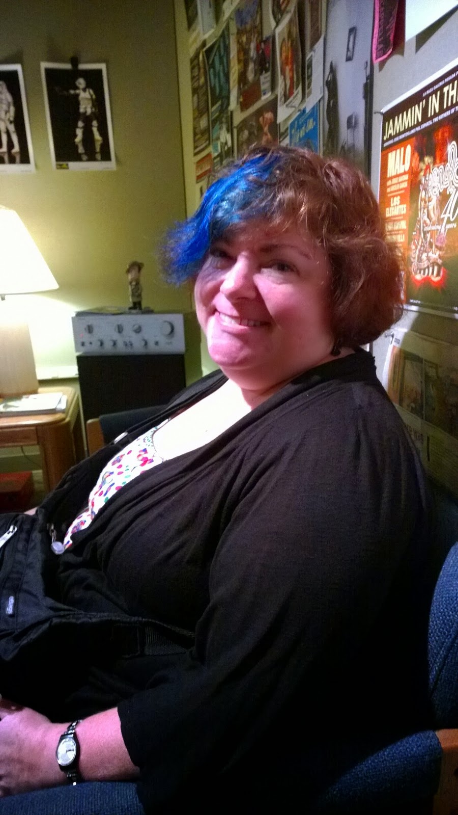 We also got to talk to the band while we waited, and that was sort of relaxing and lovely. You should listen to their audio link– they were awesome! Kim and I took pictures of each other in the green room, and that was sort of fun– we look nervous, I think, but excited, and she sounded marvelous during the show!