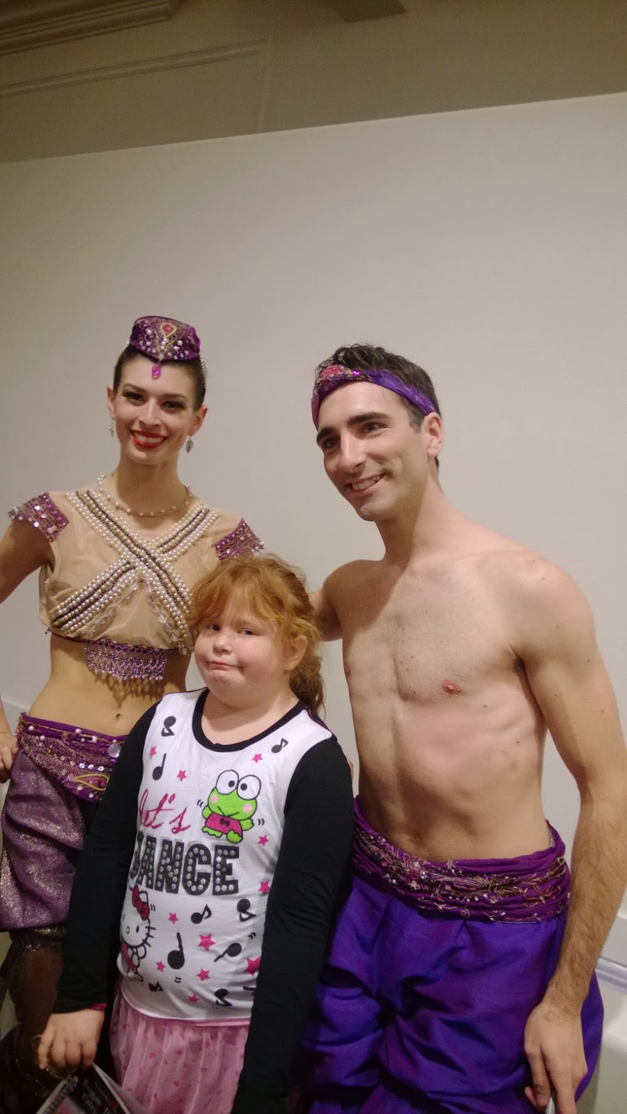 Anyway– our kids got as many pictures taken as possible, and the dancers were lovely. They smiled and chatted, everyone from the lowliest sugar plum fairy to the Nutcracker Prince himself thrilled and sweet to the children who loved them. At first I was worried about Squish’s ensemble– last year’s frilly dress was a tad small and a lot well loved. In fact, it had been loved to death, and so I put her “I love dance” T-shirt over her leotard and tutu. The dancers adored her, even her old ballet slippers, which went so much better than her tennis shoes. In being her perfectly Squishy self, she charmed everyone else with her Squishiness, and that was lovely.