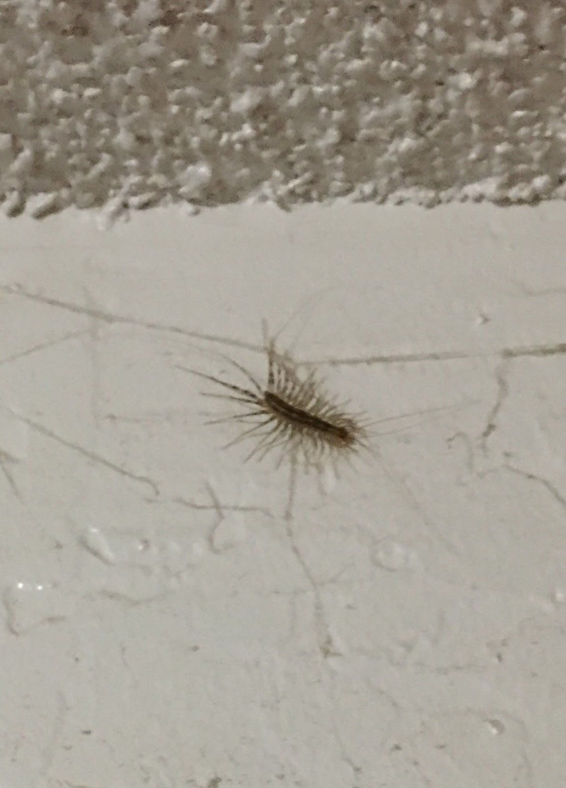 When your son comes to tell you that a many legged thing is on the wall, and it’s too high for the cat to get, otherwise the cat WOULD HAVE gotten it, because the cat has been eyeball stalking it for fifteen minutes, “Augh!” is not the appropriate response.