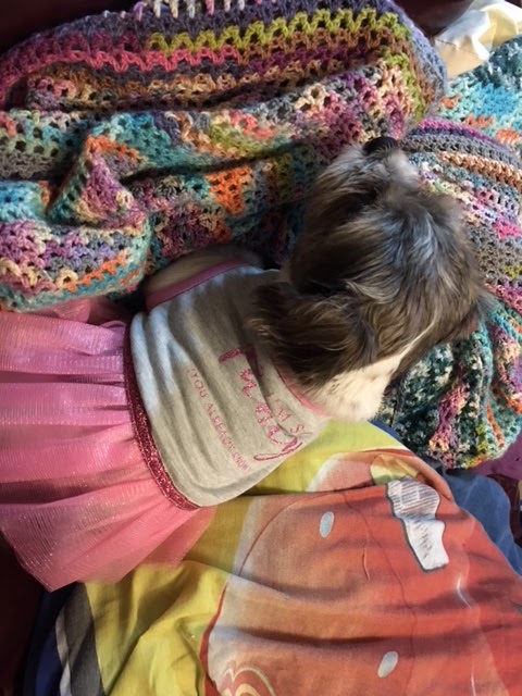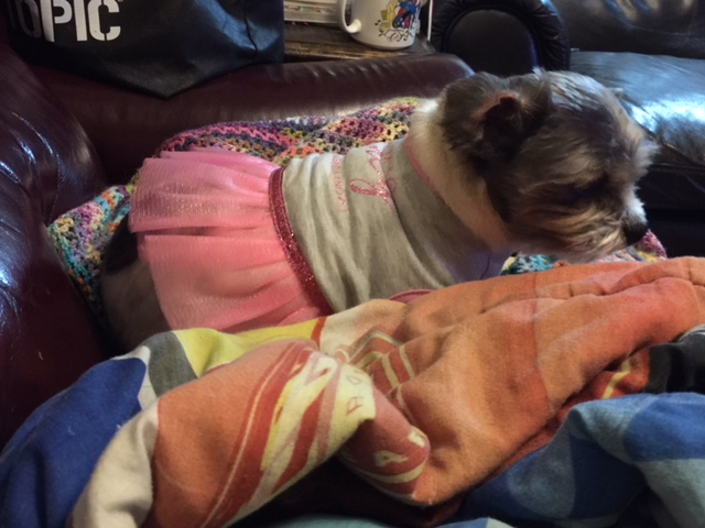 One–When Geoffie rolled around in the deer poop we had to throw away her sweater with the hood for green poopie reasons.