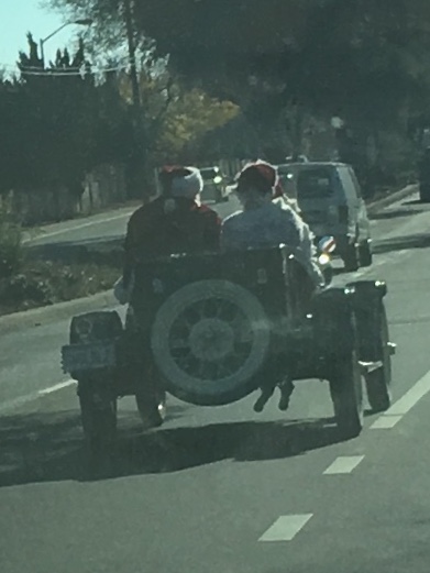 So I shit you not. The license plate of that vintage automobile driven by that charming elderly couple wearing very distinctive holiday costumes is GNGL BLZ.