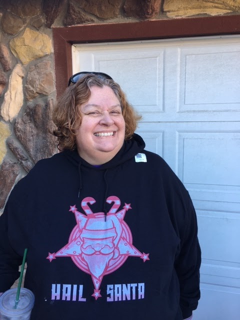 You may notice the picture! Through no fault of her own–as in, she ordered them a good month and a half before Christmas–Chicken’s present got here this morning. Mine says “Hail Santa!” and, yes, that looks a little, uhm, Santanic. I adore it. Also it fits me, and not much does. Mate’s is a Batman ugly-Christmas-Sweatshirt–it’s awesome <3 again="" chicken="" p="" wins="">