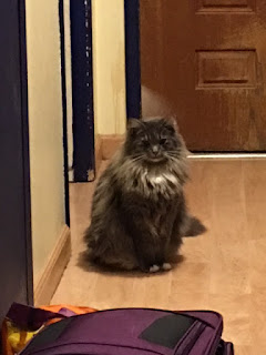 Seems to think I should have brought him a souvenir.
