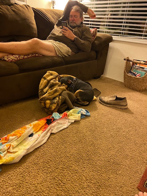 We rented a TINY HOUSE for four days–right off Noyo Harbor–as in, Squish took a video of a seal frolicking in the harbor from the back deck, and we could see water under the boards beneath the porch stairs. It was so small, the top loft was only about 4ft high–ZB sat up on a short-legged bed and had to be careful he didn’t bang his head on the ceiling. The stairs were narrow, which was good because there was less room for him to hurt himself as he fell downtime, probably flailing as he went.