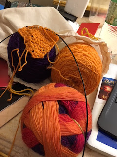 * I took Amelia, Elizabeth, Kate, Rayna, and Ariel to the same yarn store (Jimmy Beans store front) that Karen took me to, (Jimmy Beans Wool— they also have the website at the link) and we closed the place down. Also, I taught Rayna to knit. Seriously– you can’t take me anywhere. The gold and purple is what I got from this buy. The Phantasm and Love is Blind are both oxblood colors.
