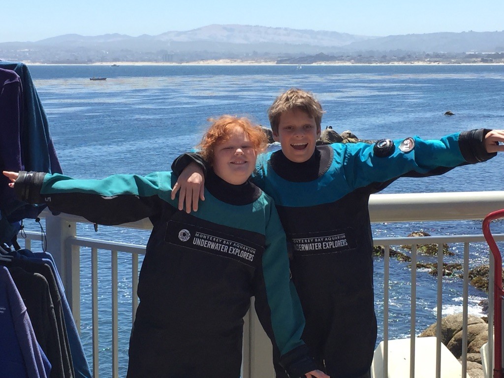 Our kids in their dive jammies, paying close attention to instructions. Squish’s “no bullshit line” is firmly in place, and Zoobmoy has his blank “processing” look on. |
