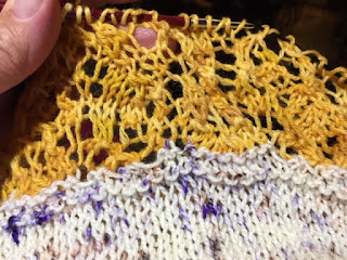 I have no idea what I”m doing wrong, and I’m going to just power through. When it’s finished and blocked, maybe I can see it. Maybe I won’t be able to–and maybe nobody else will either. The finished look is pretty complicated a a whole–not everybody’s going to see the fuck up.
