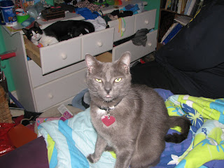 And this is what happens when you don’t watch the animals– they have a party in Chicken’s room and things get completely the hell out of hand! Look at that gray one–he’s totally stoned. And the one in the drawers? Has a SERIOUS catnip addiction. Fucking animals… feed them, give them luvies, they totally think you’re an enabler.