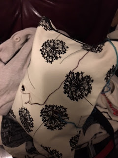 B. The other thing is that I’m trying to be sane about yarn. I mean, yes, I’ve got five other projects in my luggage–small things–but I’ve decided to try this bag here for my carry on.