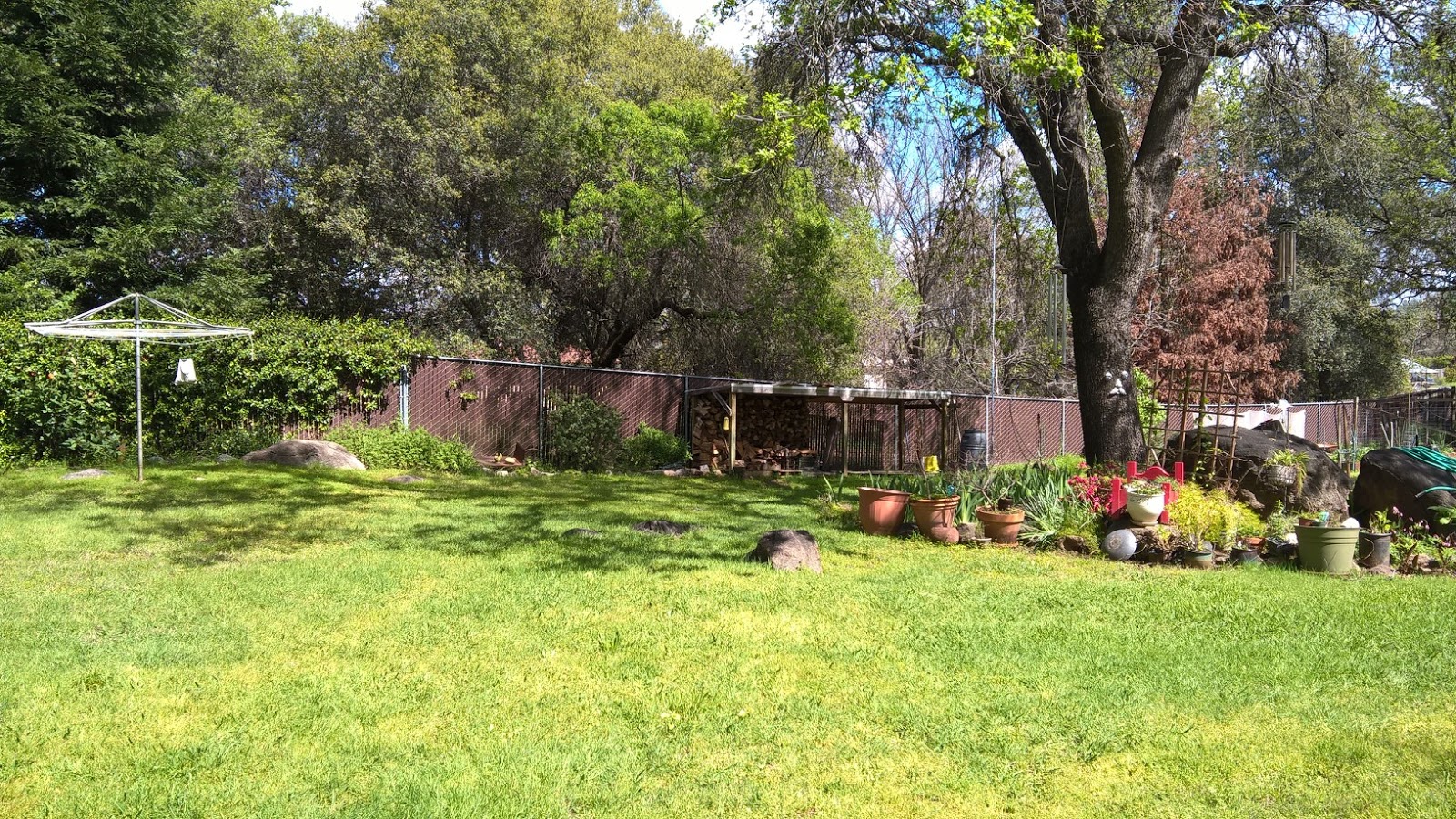 What you are seeing here equals thirty-five years of concentrated effort. When my stepbrother, stepsister and I were kids, during the summer my stepmom would leave a list of chores on the microwave when she got home from work. (She worked swing shift as a nurse’s aid until she graduated from nursing college right after they bought the house.) The list would say things like, “Pull ten square feet of starthistles, do it early in the morning so you can wear long sleeves and not get poison oak.” Or, “Weed the garden, feed the pigs, collect the eggs, dump the compost.” I remember work parties where we got all our friends together and walked a well pump into one of the three wells on the property, the pump getting heavier as our human caterpillar (not the dirty kind) circled the house.
