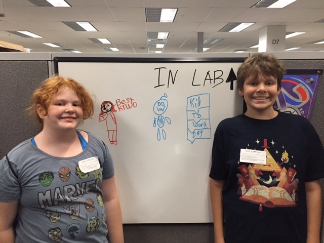 | ZoomBoy and Squish at Mate’s Kid’s to Work Day. They were all so proud–yes, including Mate. |