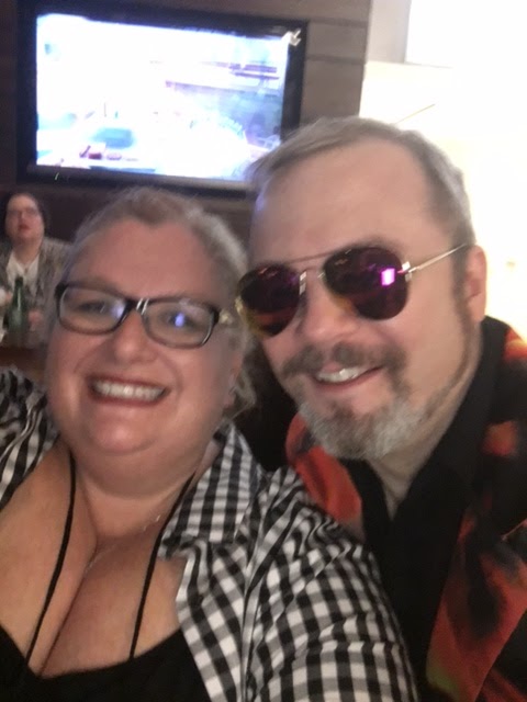 Karen Rose, all decked out for Rockabilly Night, gave me fish lips to send to our friend Carmen on FB. Karen, btw, looked STUNNING. She even wore leather pants. |
