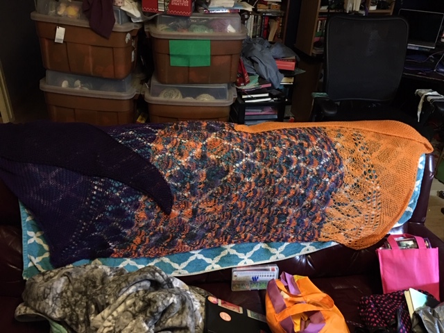 But I loved making this. And I love how delicate it is. How soft. When it’s wrapped around my shoulders, I feel–against all odds, considering the circus-Halloween colors–elegant.