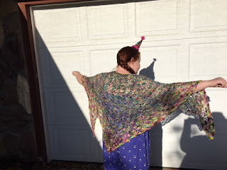 She has amazing fashion sense–but, just like her mama, just because she KNOWS something goes together doesn’t mean she’s not helplessly attracted to ugly color randomness that shouldn’t be beautiful but she thinks IS. Her purple pantsuit this morning had a lovely gray cardigan that came with it. Squishy went with the cotton-candy colored shawl I crocheted for her because, in her words, “It looked like mermaids.”