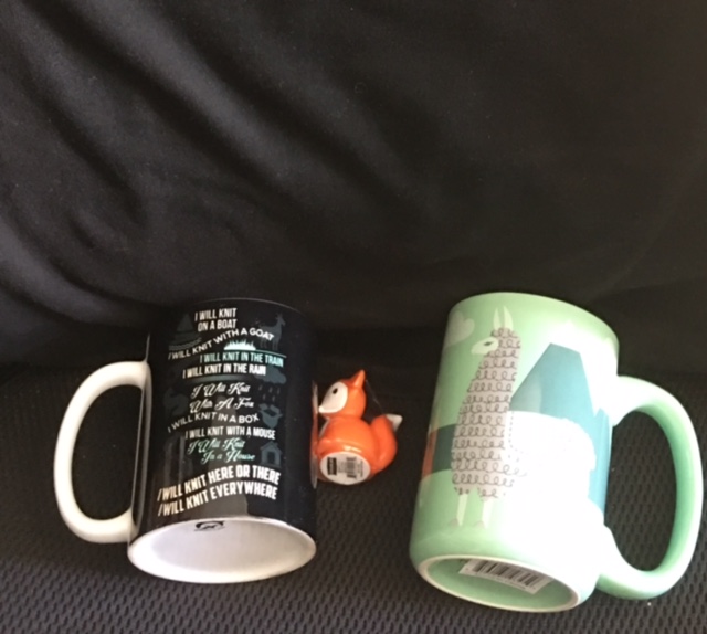 From my sister, I got the Dr. Seuss’s knitting coffee mug– you may have to enlarge the photo, but it’s got a great lyric on it, to the patter of Green Eggs and Ham. “And I will knit on a boat, and I will for a goat!”