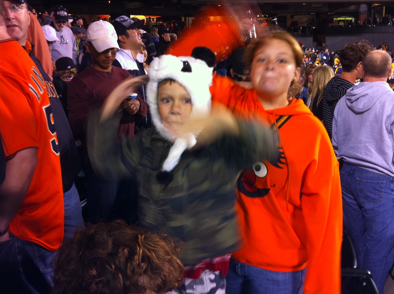 Above: We bought the Panda hats at the game, and Zoomboy REALLY loves his. Notice the tooth? Yeah… first he lost it, then, after he showed it to me, he LOST it. The kid does not give a flying shit about the tooth fairy. Good for our pocketbook, but, well, which kid doesn’t give a shit about a buck under his pillow?