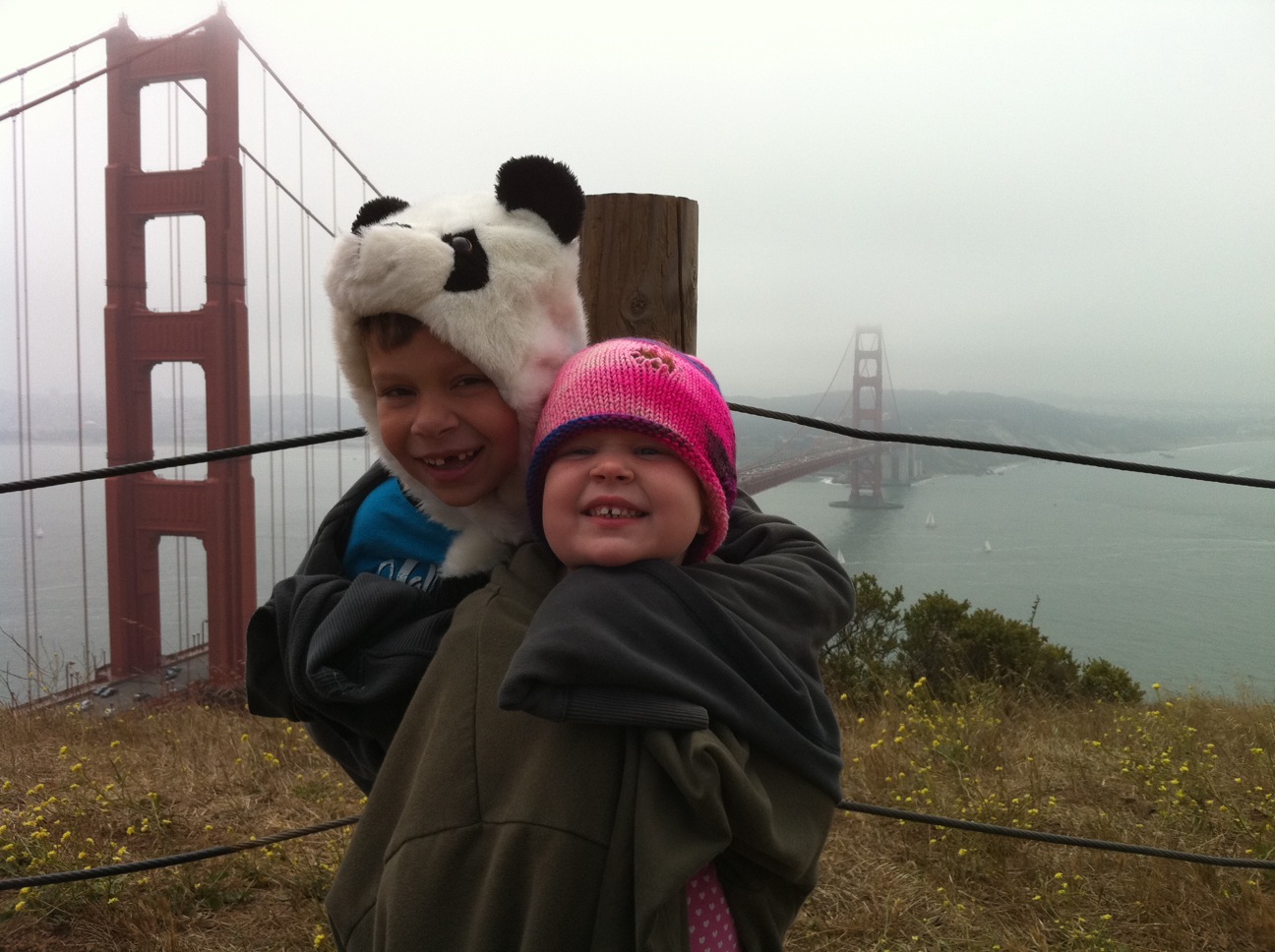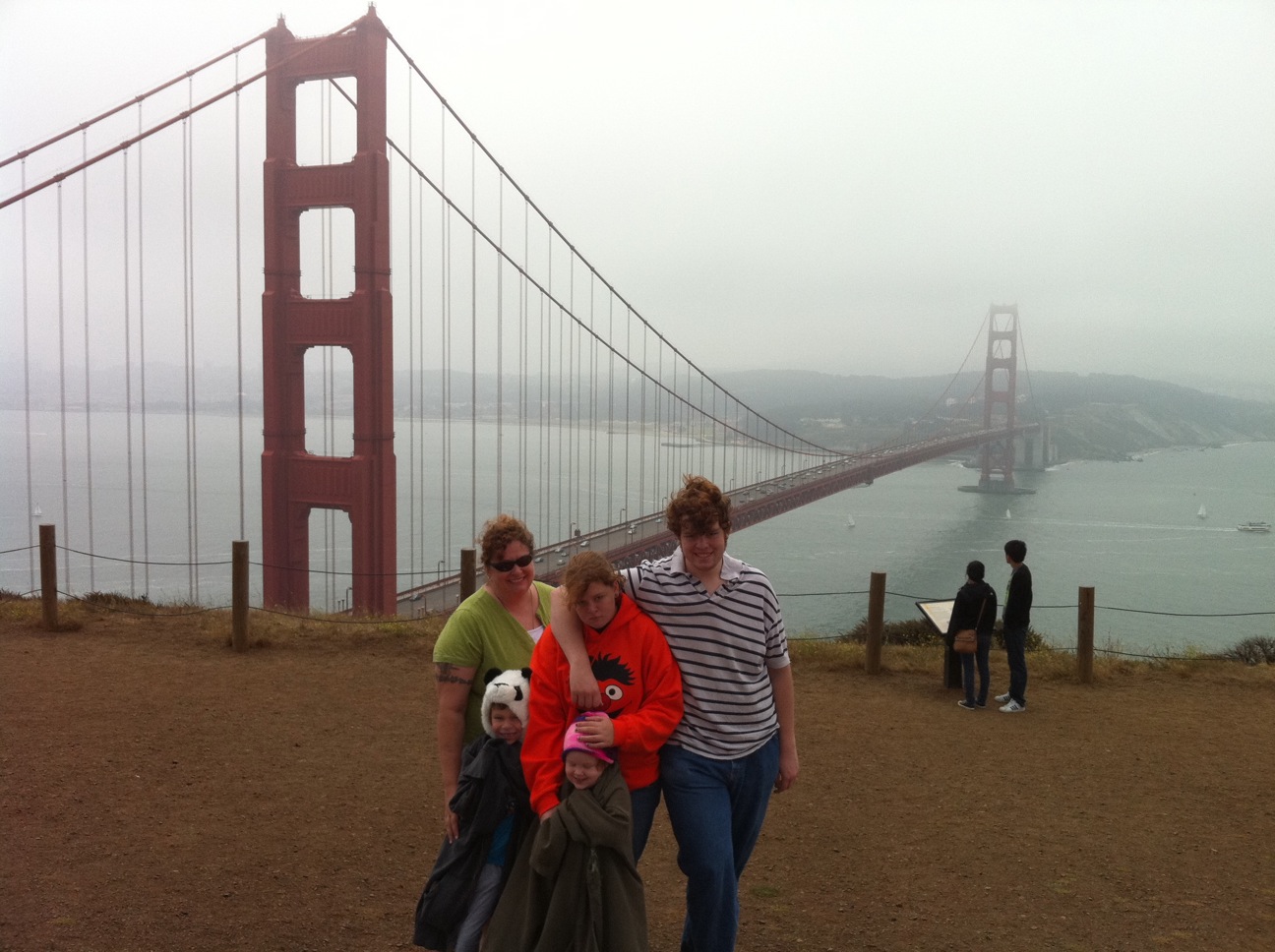 Above: A little known overlook over the Golden Gate bridge–notice that Big T and I are sweater-less and the short people are not? It got colder as we walked!