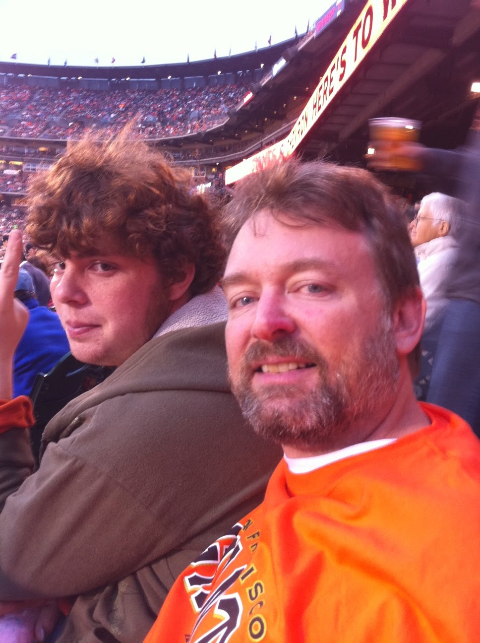 Above: Okay– this is the morning AFTER the game–but don’t they look cute in their panda hats?