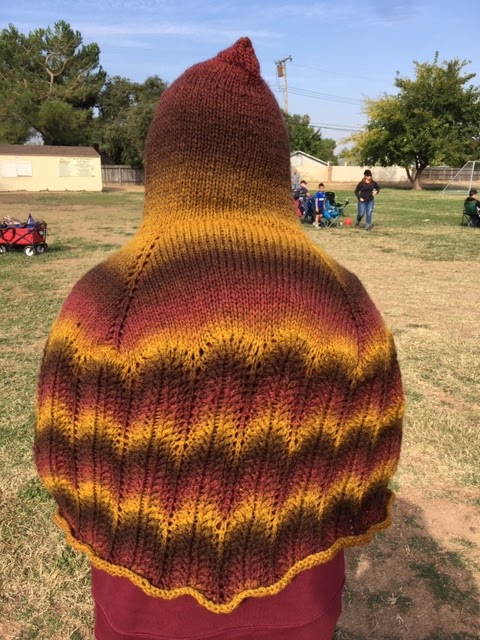 Okay– talking to the moms and Mate which was possibly the best part, besides finishing this hooded poncho, which nobody–repeat NOBODY in my family wants. The girls are both, “But we like PASTELS!” So this will probably go to a random cousin because i had sort of an idea about knitting a big box of stuff for them and sending it and saying, “Just send me pictures!”