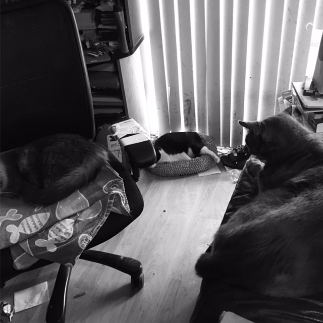 I bungled the cat picture though. They were just all asleep in the same general area, without any one cat being on the same piece of furniture as any other cat. I was trying to capture that, but hey, streak of ugliest pictures on the internet remains unbroken.