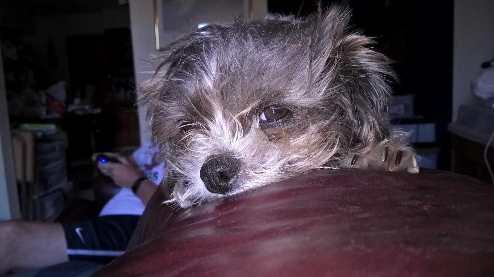 Because the thing about grooming is that the whole reason we do it is because… *flails* Look at this face! It’s all hair! And they asked us if we wanted the “teddy bear” cut, and I said yes, as long as her mustache and beard were REALLY SHORT, because otherwise she gets stickers in them.