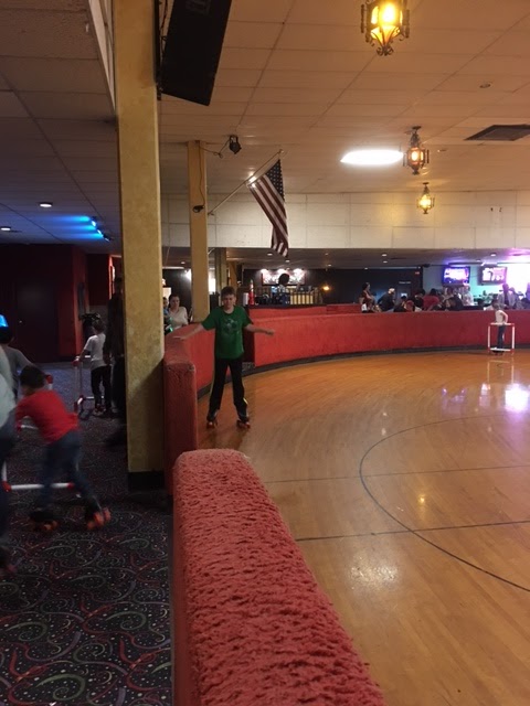 Took ZoomBoy to a birthday party at the skating rink while his sister was playing soccer.