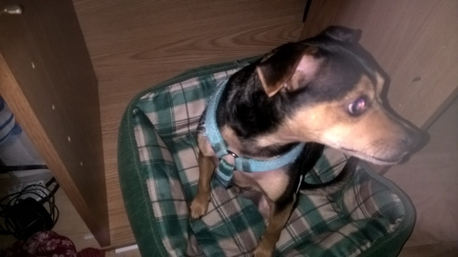 When I’m here… well, she sits in my chair and waits for love. Which she got.