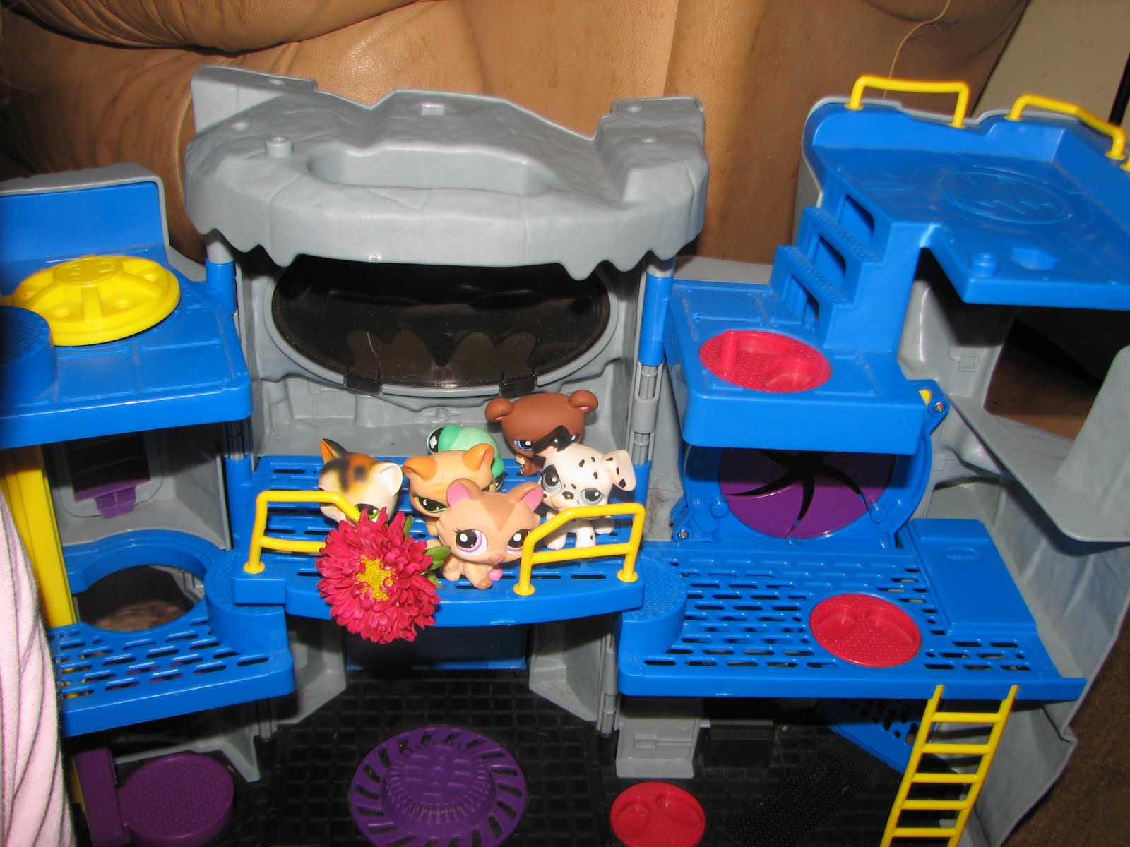 And oh– about the picture? Yesterday, Squish wanted me to document her inner monologue as reflected by a bunch of Littlest Pet Shop toys frolicking in the Batman fortress of terror, and I thought I’d share. The funny thing is, I was thinking that she was pretty smart for a little kid when I went searching for the (obviously malfunctioning) camera to take the picture, but when I downloaded the photo I found a 20 picture sequence of a big GI Joe doll, apparently doing the Cabbage Patch dance in a circle over my eldest son’s bed. I think he was experimenting with stop-action–and it worked, as I was flashing through the photos on the computer, but, uhm, keep in mind that he’s 18. For some reason, her picture is cuter…