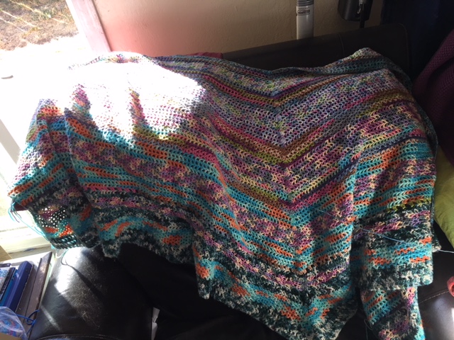Current Project: Still the Wave Crash–but I may stop before it’s totally done–right now the wingspan is LUSH and it’s pretty darn deep. I may just put a really deep hood on it at the end of this pattern repeat (there is a pattern, but it’s hard to explain) and wrap a border around it and call it a happy monstrosity. (Okay– for the record? Only I get to call it a monstrosity because I love it, and it’s mine.)