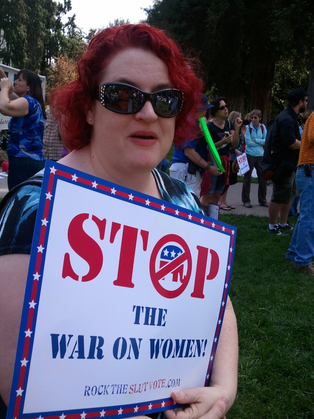 But somehow, standing there with my protest sign didn’t feel like enough. It didn’t. I mean, none of that idiotic, socially retarded (and I mean that in the dictionary sense), dumb-as-fucking-tits-on-a-cthulhu legislation has been passed in my state, and I can talk about prevailing political climate and how that translates to the attitude of those of us here on the sidewalks all I want, but it by no means gives voice to the idea that standing on a lawn and waving a sign did not feel productive enough. Hell–I would have settled for chucking copies of The Handmaid’s Tale at the heads of congresspeople, and if anyone ever makes that a carnival event, believe me, I’ll be the first in line.