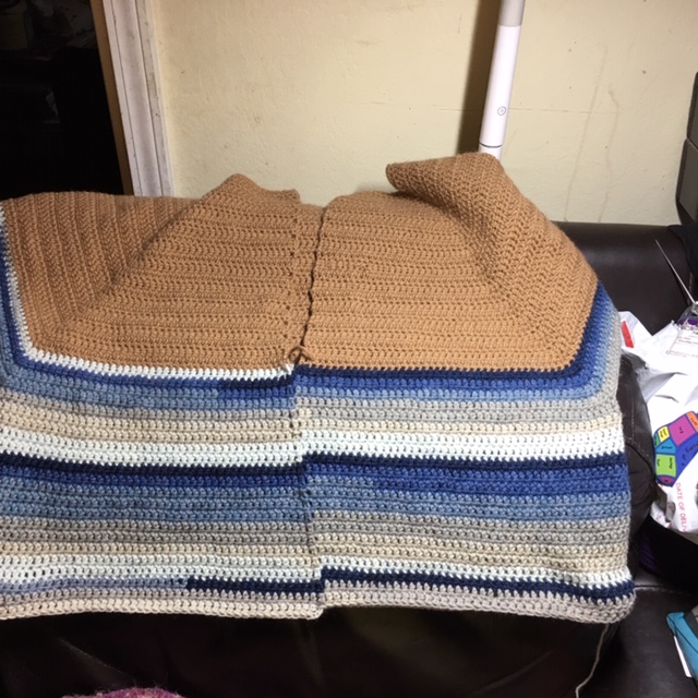 I’ve actually made some progress on it–it’s in the place where I do the body, so it’s essentially around and around and around and around and around until I want to gouge my eyeballs out with a crochet hook.